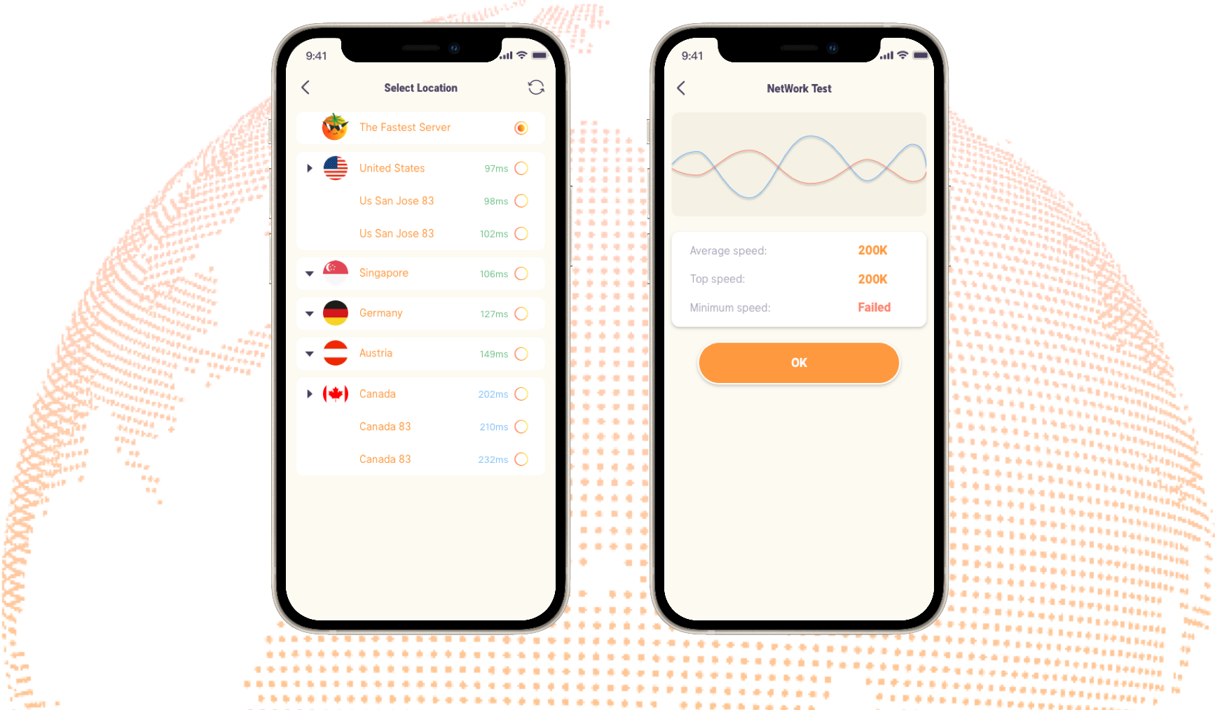 Nodes from all over the world. Quick connection.